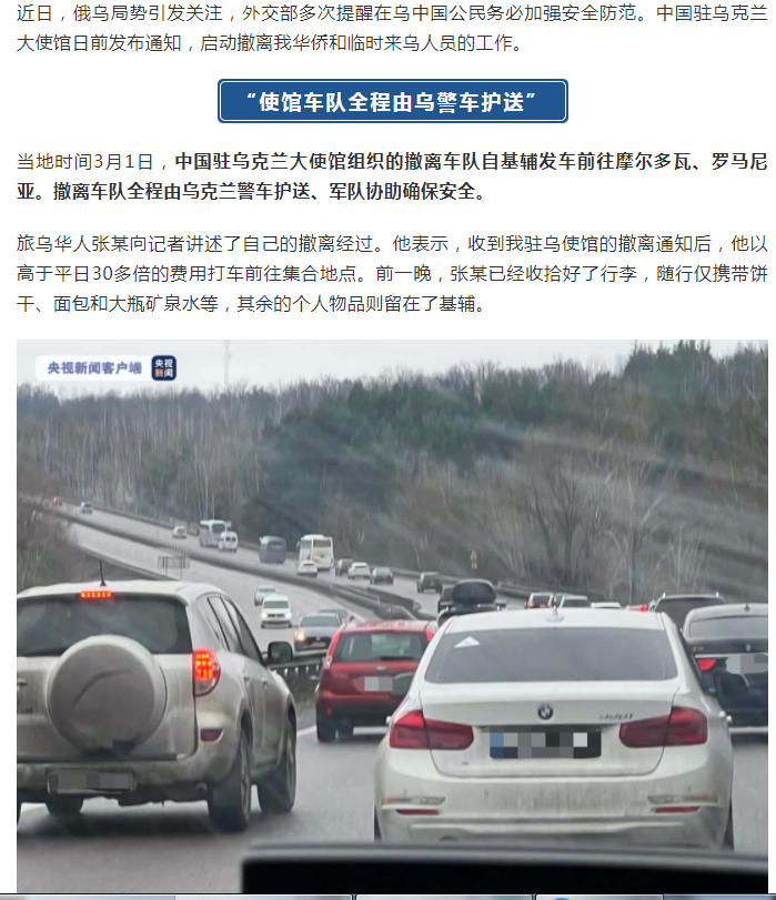 使館車(chē)隊全程由烏警車(chē)護送……” 他們講述撤離經(jīng)歷→