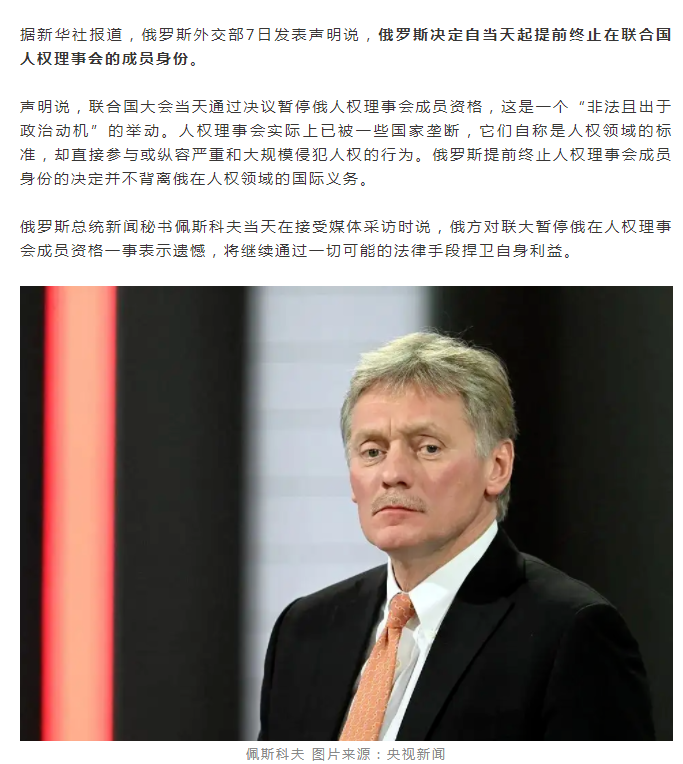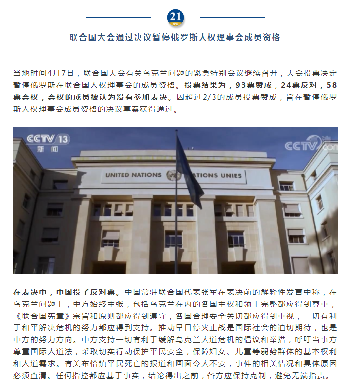 聯(lián)合國大會(huì )暫停俄羅斯人權理事會(huì )成員資格
